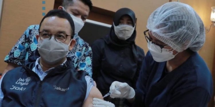 “Artinya, temuan riset medis kita tahu, dan data di Jakarta, tadi sudah saya paparkan, menunjukkan bahwa mereka yang sudah divaksin risikonya terbukti di lapangan jauh lebih kecil, daripada mereka yang belum divaksin,” ungkap Anies.