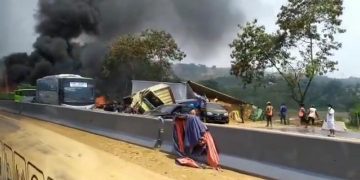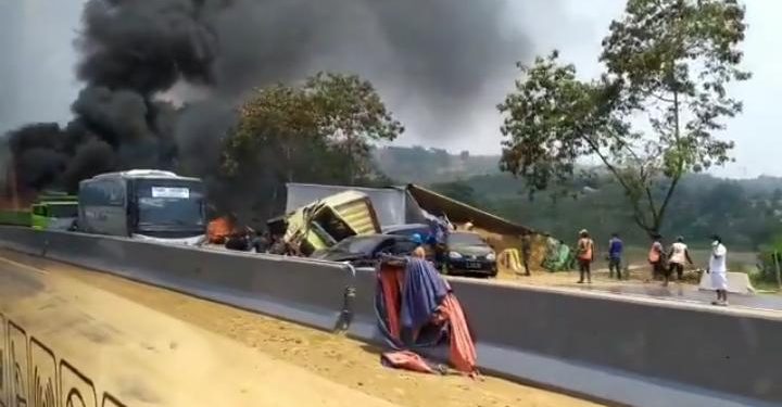 Dalam video yang beredar, juga terlihat sejumlah mobil yang ringsek berat hingga hangus terbakar, bahkan ada yang keluar dari ruas jalan tol.